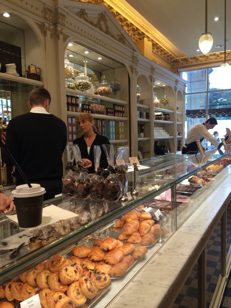พอน้องตื่น ก็เดินไปกินขนมร้านดัง Angelina พอไปถึง ร้านเค้าหรูมาก ไม่กล้านั่ง กลัวเด็กร้อง