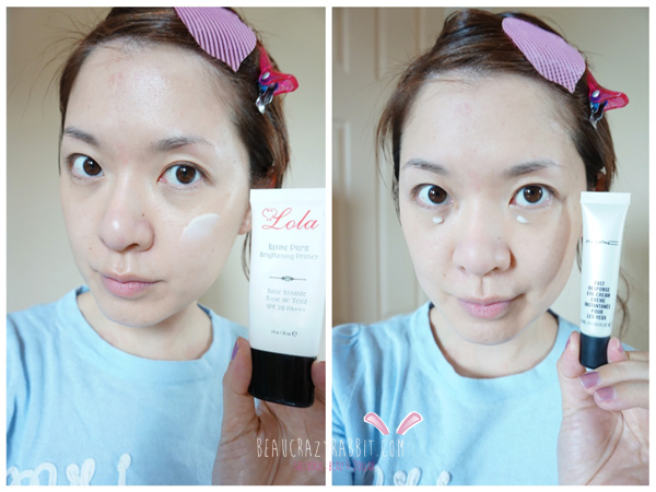 I put in essence and Lotion from the faceshop. The primer from Lola that will blur the pores. Next up the Fast response eye cream from M.A.C., this is eye cream with silicone base which will conceal the wrinkle under eyes.
