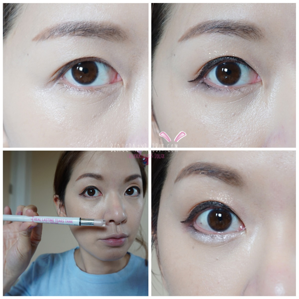 I used Mille Eyeliner for thin line then just a little longer than actual eyeline.