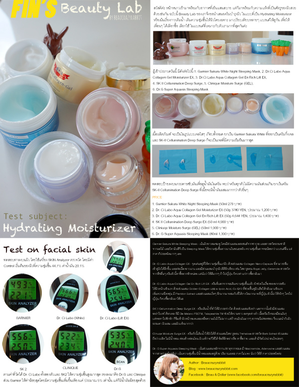 Beauty Labo : Hydrating Moisturizer เปรียบเทียบครีมเติมน้ำผิวหกชนิด (SK2, Clinique, Dr.Ci Labo, Dr.G, Garnier)