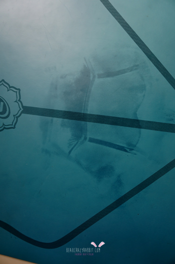 ปกติเสื่อ Manduka PRO series ใหม่ๆจะมีแผ่น Film บางๆเคลือบป้องกันผิวเสื่ออยู่ ซึ่งจะค่อยๆลอกไปเองเมื่อโดนเหงื่อจากตัวเรา