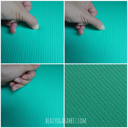 นอกจากนี้ยังมียี่ห้ออย่าง Jade Yoga อีก ที่เราเคยจับๆ ดูก็พบว่า ใช้ได้นะ แต่ดีไซน์อาจจะไม่โดนใจเรา เราเลยไม่ค่อยได้หาข้อมูลค่ะ เนื้อจะเป็นแบบนี้ ถ้าเทียบกับ Manduka