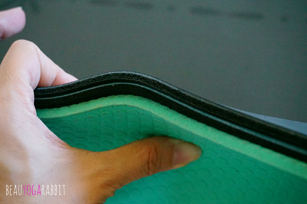 ความหนา ก็หนากว่าของ manduka นิดนึง เค้ามีส่วนด้านล่างที่เหมือนจะซึมซับแรงกระแทกได้ดีกว่านิดนึงด้วย