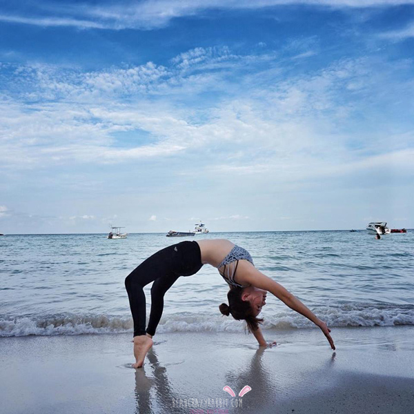 ถ้าทำพวกท่า inversion กลับหัว ผ้าก็จะเลิกลงมาด้านล่าง ก็อาจจะไม่เหมาะนักที่จะทำท่ายากๆ นะคะ ตัวนี้