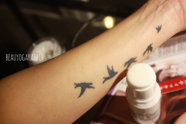 เป็นโรลออนแบบทาๆ เราทาตรงรอยสักนกของเราจะได้เห็นชัดๆ มันทาง่าย ไม่มีคราบขาวๆ ใดๆ ติดเลย