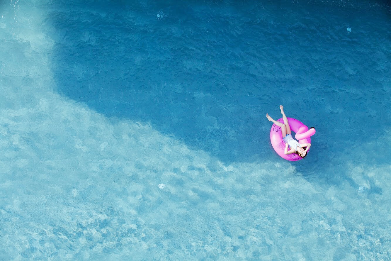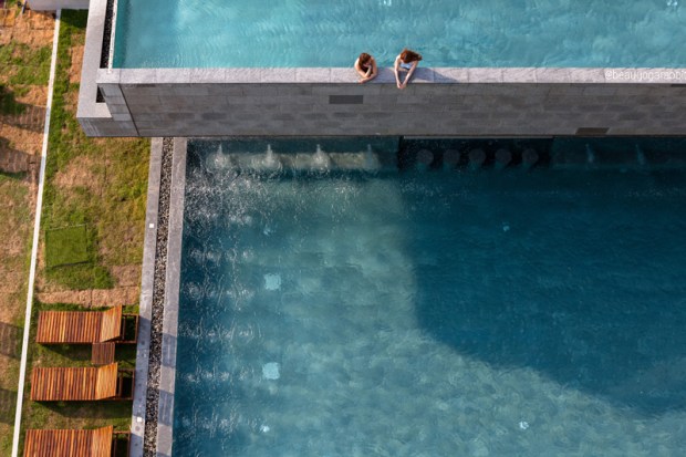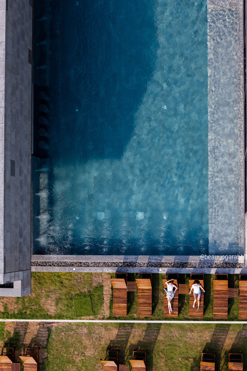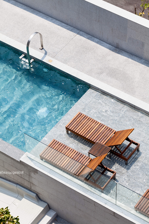 ส่วนด้านหน้าของ double deck pool จะเป็นกระจกใส จุดนี้คือมุมถ่ายที่ห้ามพลาด