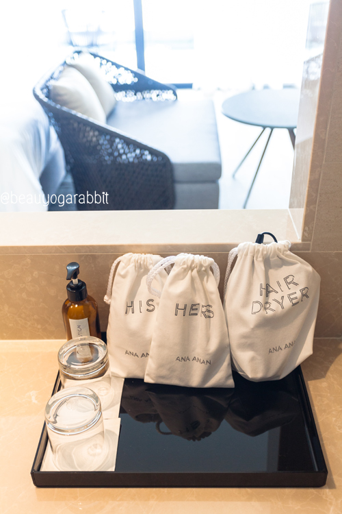 ในส่วนของ amenity ในห้องน้ำ ก็จะมีความใส่ใจ แบ่งเป็นถุงของ his & Her ด้วยนะ