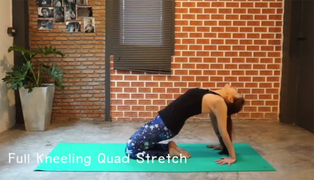 แค่ท่านั่งคุกเข่าก็ช่วยยืด Quads หรือหน้าขาได้แบบเบาๆ แล้ว บางคนที่นั่งคุกเข่าไม่ได้สามารถนั่งบนบล๊อกได้