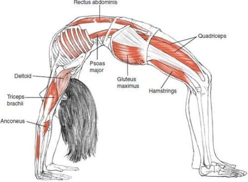 มาดูแบบรูปภาพกัน อ่ะ ดู anatomy ท่านี้สิ่งที่เราต้องใช้ แน่นอน ขา ก้น แขน ไทรเซป ส่วนที่ต้องใช้อีกคือ ท้องและ Psoas ตามจุดที่แดงๆ ในรูปนี้