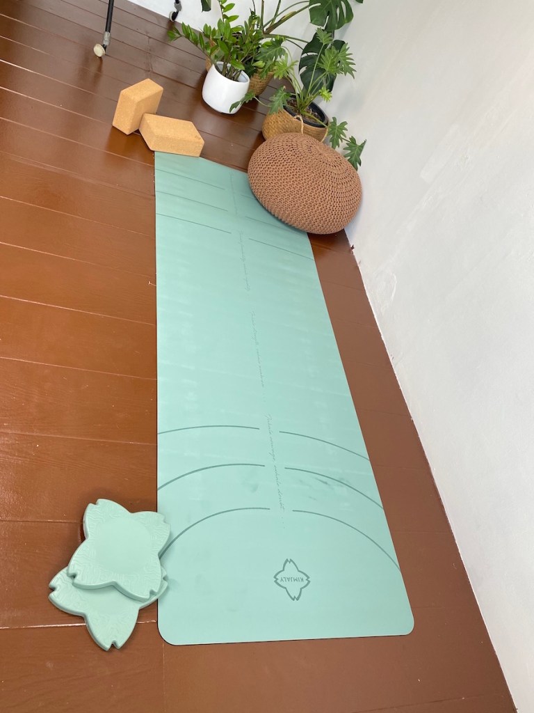 สิ่งที่ต้องพูดถึงก่อนเป็นสิ่งแรกคือ เสื่อโยคะสีมิ้นต์ !!! สายสีมินต์อย่างเราก็กรี๊ดนะ เพราะสีน่ารัก แถมเป็นเสื่อหน้า PU ที่คุณภาพดี ดูดซับเหงื่อได้เร็ว มีความหนึบ เหมือนเสื่อราคาแพงๆเลย แต่นี่คือ พันเดียว! ข้อเสียคือมันบาง มันเป็นรุ่นทราเวล คือเราพกไปสตู เอาไปปูทับเสื่อที่เรามีอยู่ หรือที่สตู แต่ถ้าเราเอามาใช้เดี่ยวๆ คือจะแอบบางไป แนะนำคนที่จะซื้อผืนเดียวให้เลือกรุ่น 5 มิลมันจะแพงกว่า 200 อยู่ที่ 1200 บาท แต่ห้ามิลไม่มีสีมินต์ดังนั้น เราจึงเลือกสามมิลมา